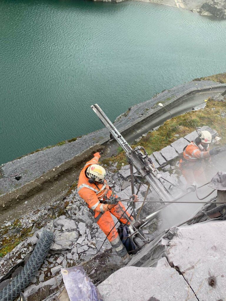 Trefnodd Griffiths i’r dylunydd gynnal archwiliad cyffyrddol o wyneb y graig o dan oruchwyliaeth y Goruchwylydd Mynediad â Rhaffau Lefel 3. Roedd hyn yn caniatáu i fapio toriad manwl gael ei gwblhau i gadarnhau mecanweithiau methiant cwympiadau craig a chwblhau dyluniad manwl y bolltau creigiau a’r rhwyll wyneb.