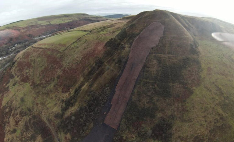 The preliminary design broadly consisted of recovering 500m3 of failed material from the base of the tip to a receptor site on nearby Troed-Y-Rhiw Mountain.